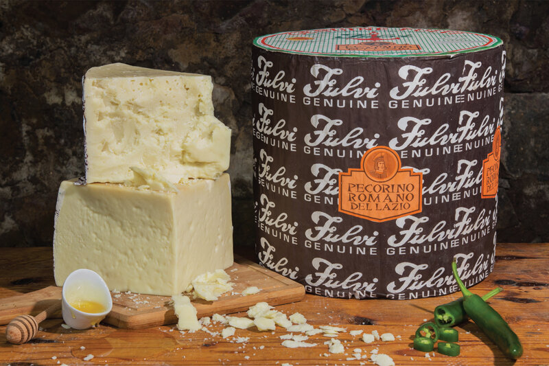 Pecorino romano del Lazio, DOP. Latte di pecora, stagionatura 12/14 mesi.